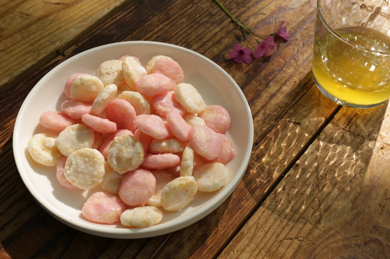 【原材料】 国内産うるち米、上白糖、赤しそ、梅酢、卵白、食塩