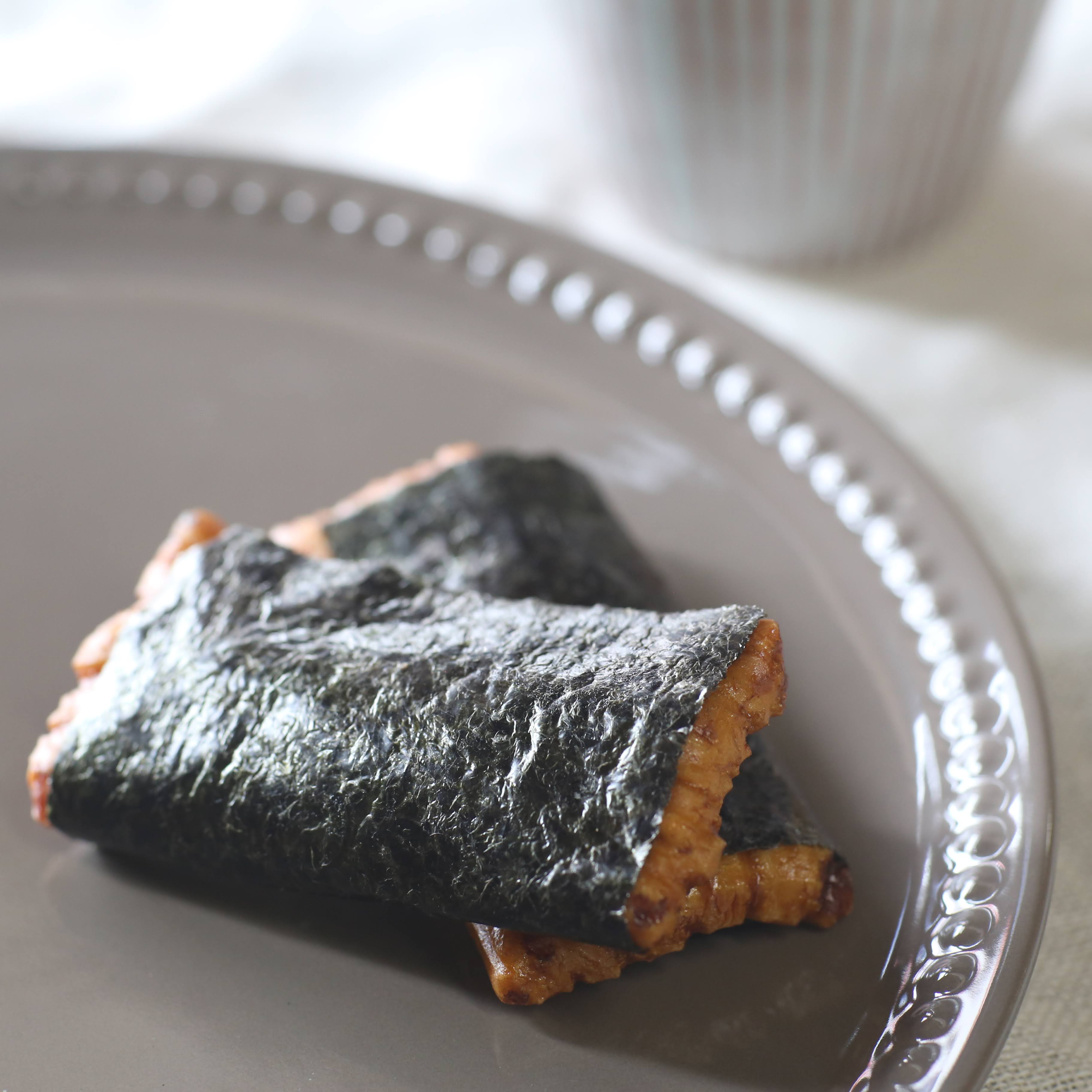 【原材料】 国内産餅米、海苔、醤油、砂糖、本みりん、かつおコンク、コンブエキス液、香辛料/加工デンプン、調味料(アミノ酸等)(一部に小麦・大豆・さばを含む)
