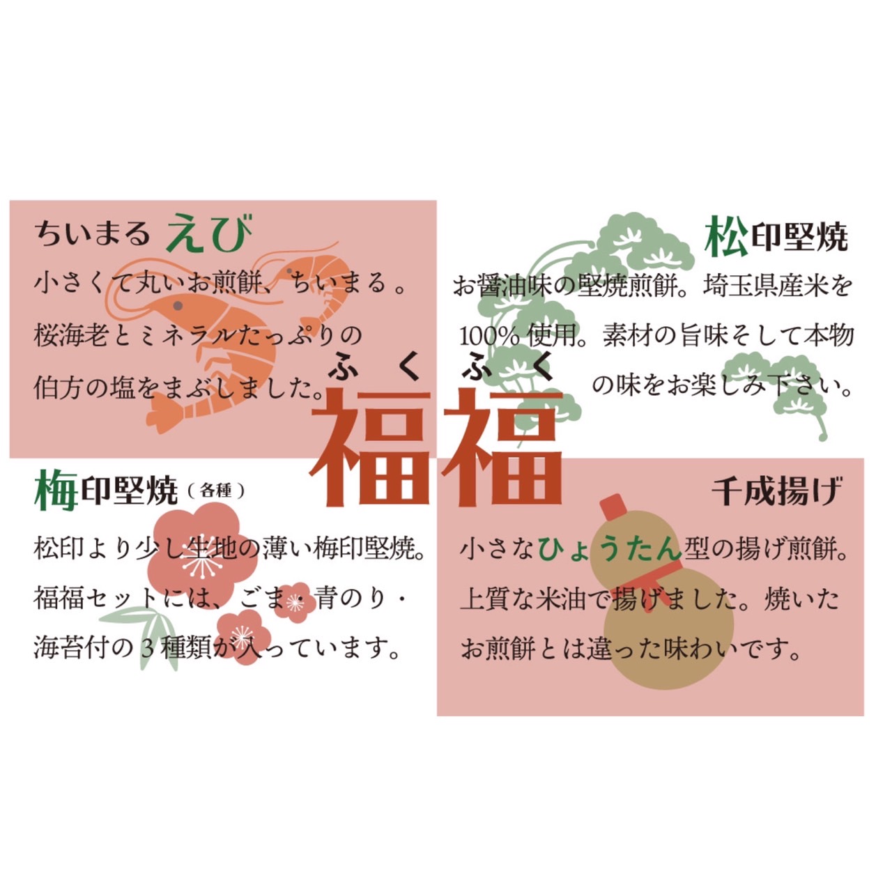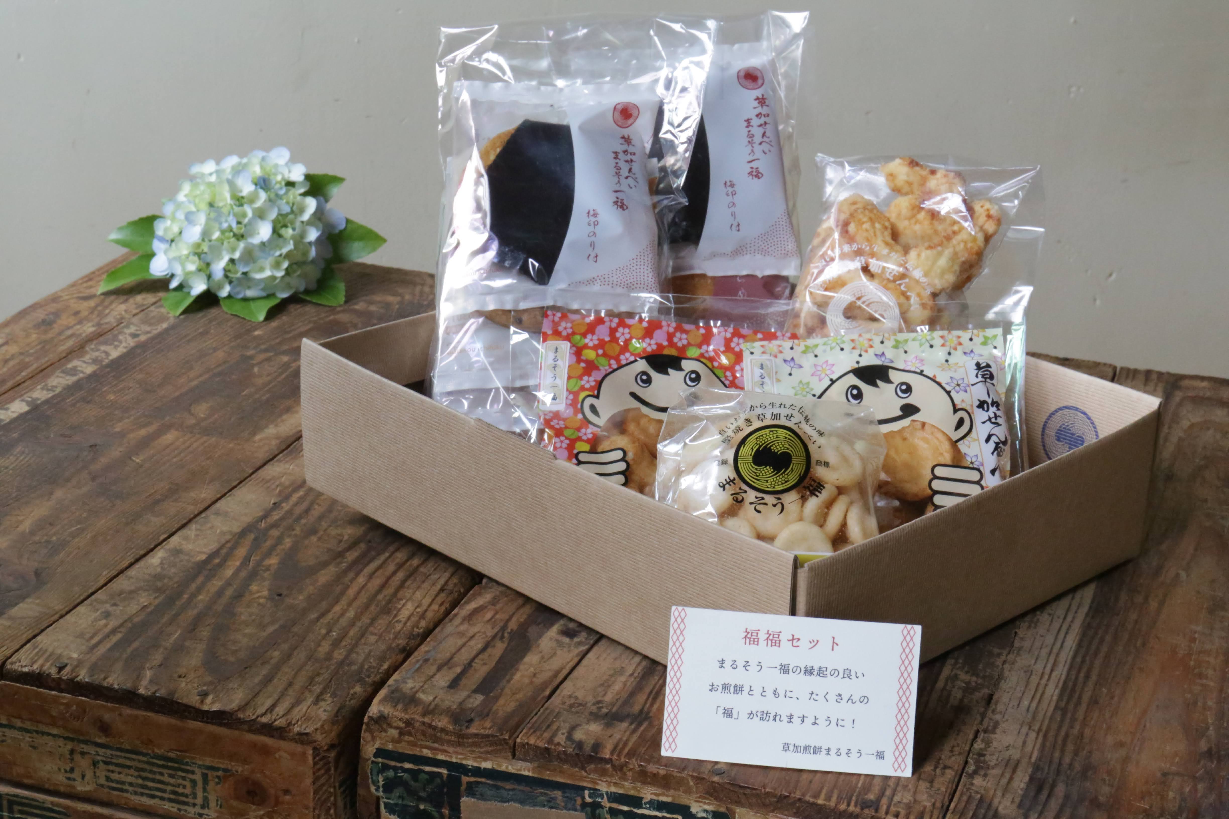 まるそう一「福」のお煎餅とともにたくさんの「福」が訪れますように!!との想いを込めて 福福セット です。